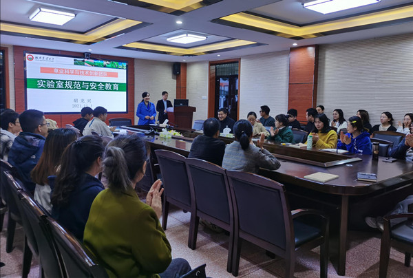 自7月份以来,国内高校频发实验室安全事故,特别是10月24日南京航空航天大学实验室爆燃造成了2死9伤的严重事故,自此,学校与学院高度重视实验室安全教育。为传达学校与学院的安全教育精神,11月1日,草业科学与技术创新团队在农学院12教105会议室举行了实验室规范与安全教育暨硕士研究生师生见面会。会议由草业科学与技术创新团队负责人张志飞教授主持,草业科学系主任胡龙兴副教授对团队全体师生作实验室规范与安全教育培训。