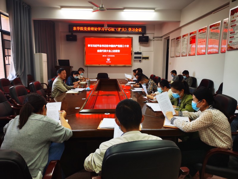 10月20日下午,继10月16日上午集中收听收看中国共产党第二十次全国代表大会开幕会之后,农学院召开“学习党的二十大报告”第一次专题学习会议,学院领导班子成员、党委委员、支部书记以及科级干部参加,党委书记周其林主持。