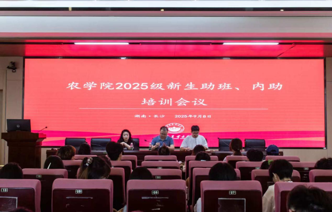 9月8日中午,农学院2025级新生助班、内助培训会议于十二教617举行。农学院党委副书记徐辉,团委书记徐淼,2025级辅导员廖滢滢以及全体新生军训负责人、助班、内助参加会议。会议由团委书记徐淼主持。