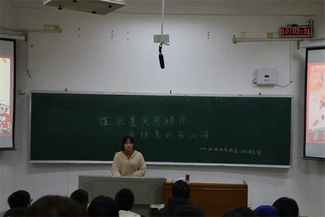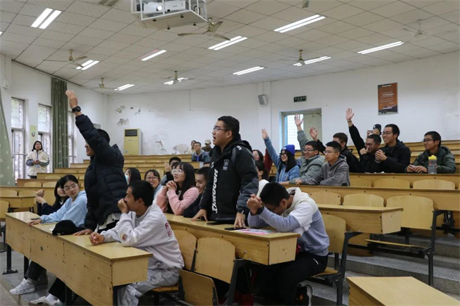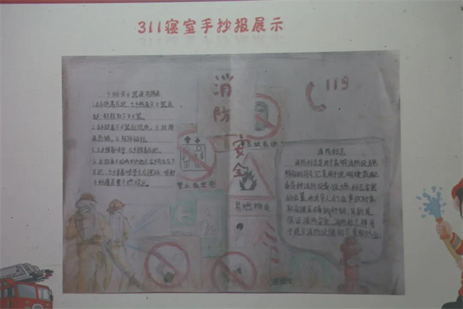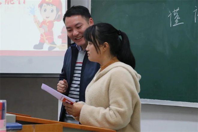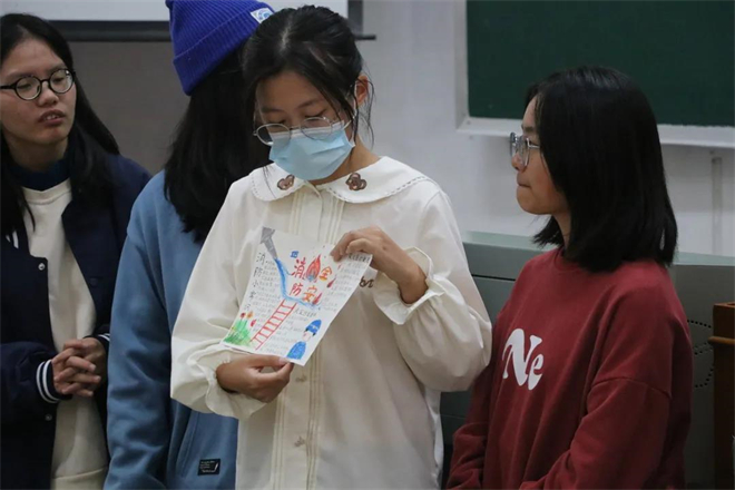 在“手抄报展示”环节,同学们以寝室为单位一起上台,每个人轮流进行自我介绍,并选出一名代表对手抄报内容和主旨进行详细讲解。为了进一步强化学习成果,文艺委员教大家学唱《消防安全歌》,在潜移默化中培养大家的消防安全意识。活动结束后,主持人为每个环节获胜的小组和寝室颁发奖品,并由各小组组长上台分享学习消防安全知识的感想。