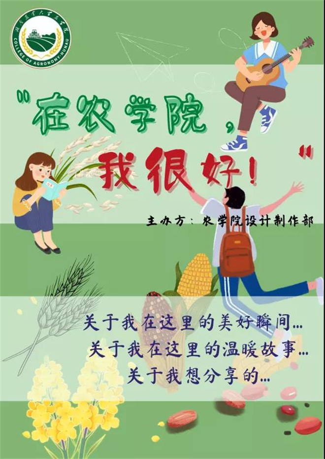 湖南农业大学有着极其优美的环境,每天看着这些美丽的景色是我在农学院的收获的第一份快乐。农学院各式各样的美食能够治愈我,给我温暖和力量。寝室也里充满了我们共同的美好记忆,这些都让我更好的融入了农学院这个大家庭。