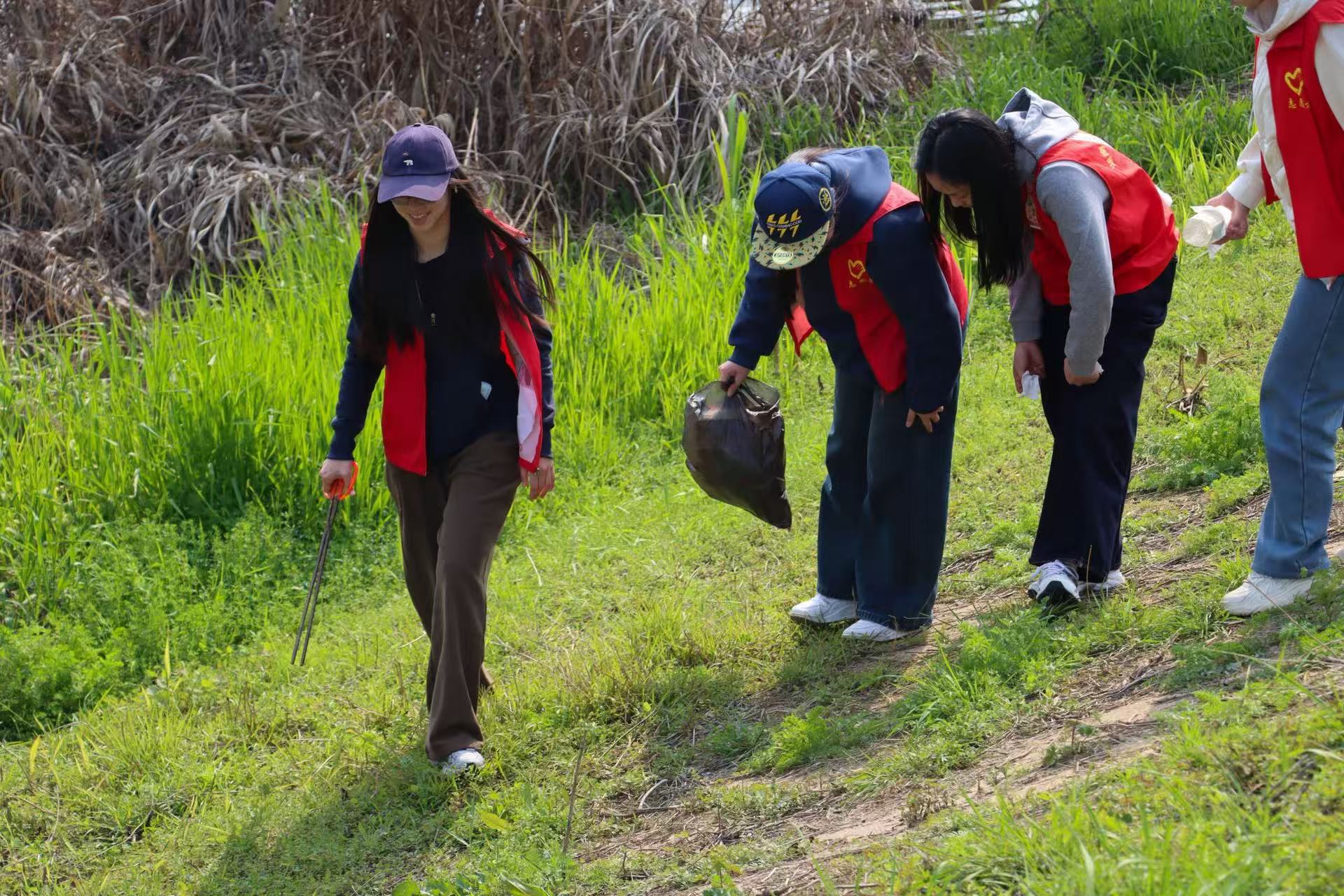 活动当天,志愿者们早早来到浏阳河畔集合。签到、领取工具、分组分工……一切准备就绪后,大家便迅速投入到各自的任务中。负责河岸清理的小组沿着蜿蜒的河道仔细巡查,不放过任何一个角落。无论是石缝里的烟头,还是草丛深处的塑料包装,志愿者们都弯腰捡起,一一收入垃圾袋中。大家分工协作,配合默契,现场井然有序。正如老子所言:“天下大事,必作于细。”每一次弯腰,每一次拾捡,都是对雷锋精神最质朴的传承,也是对母亲河最真诚的守护。