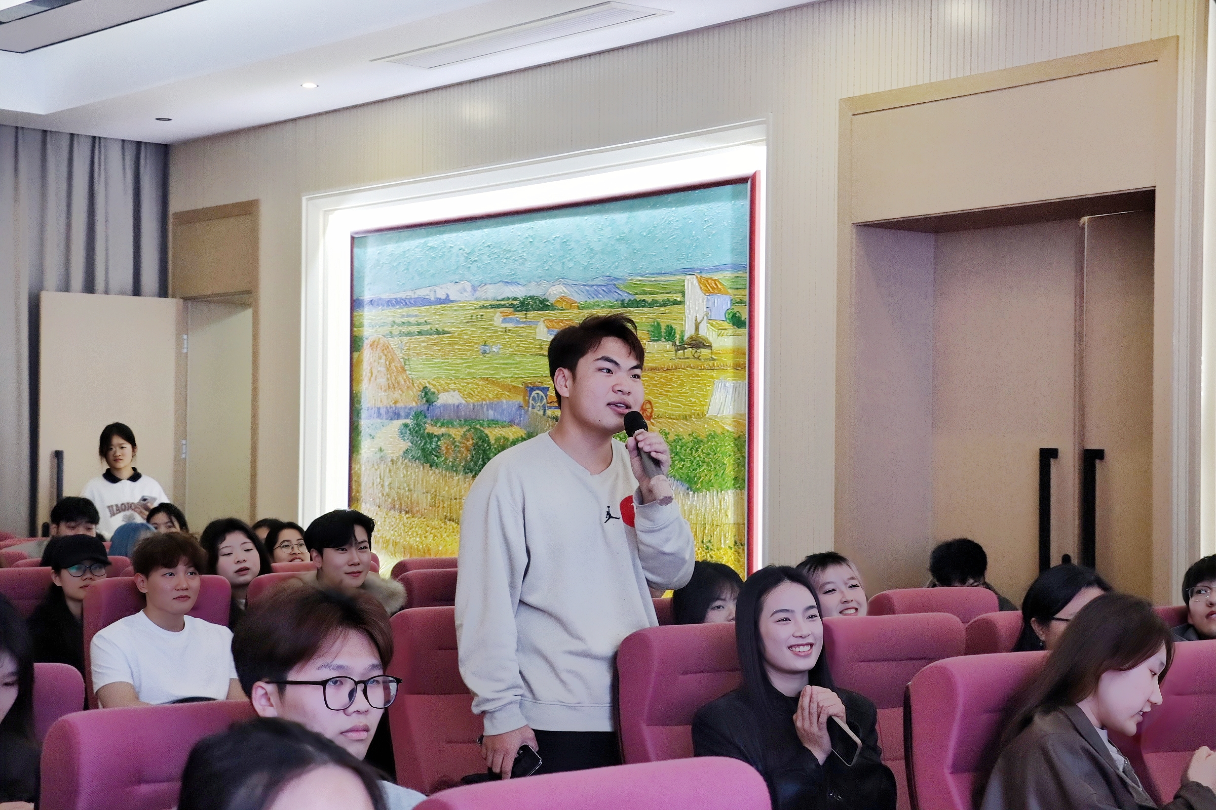 先是考验乐感的「旋律暗码・间奏识曲」,无声前奏一响,台下观众踊跃举手抢答,声声应答、阵阵欢呼将气氛推向小高潮。紧随其后的「歌韵传字・一句定音」更是点燃全场热情,随机邀请观众上台接力接唱,欢声笑语不断,全员沉浸其中,彻底盘活整场氛围,用满满乐趣与惊喜奏响青春乐声。