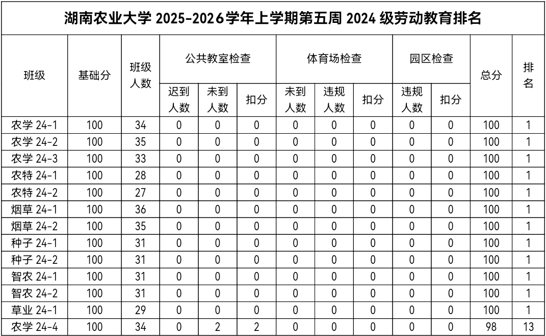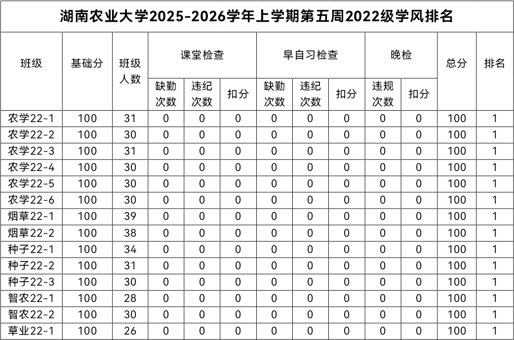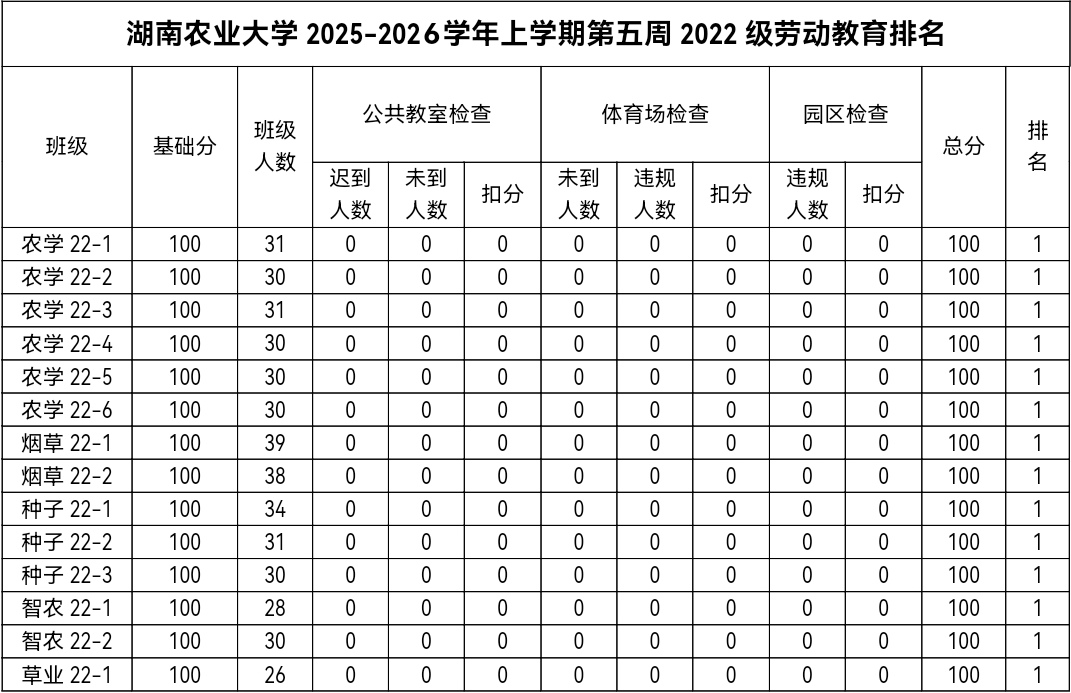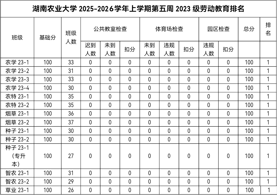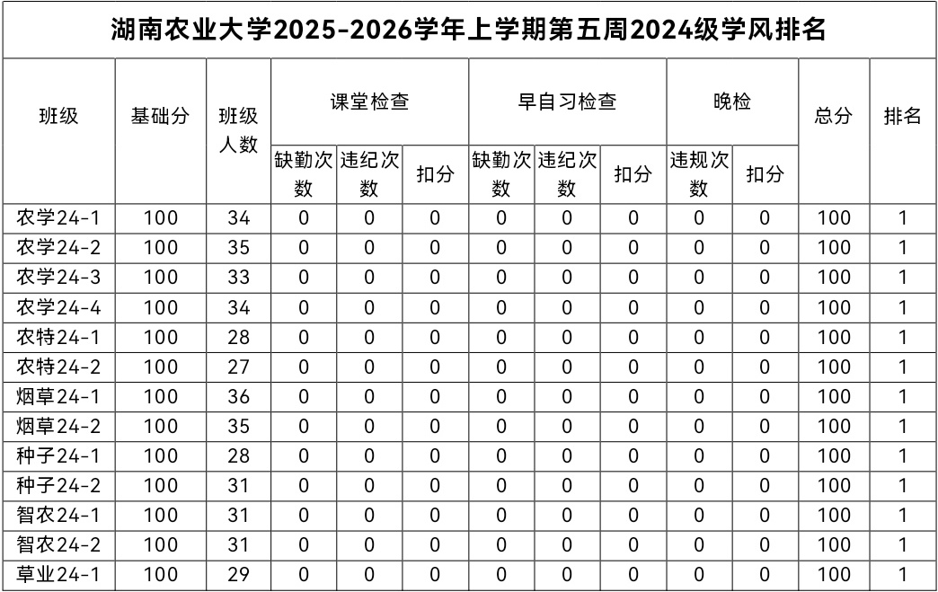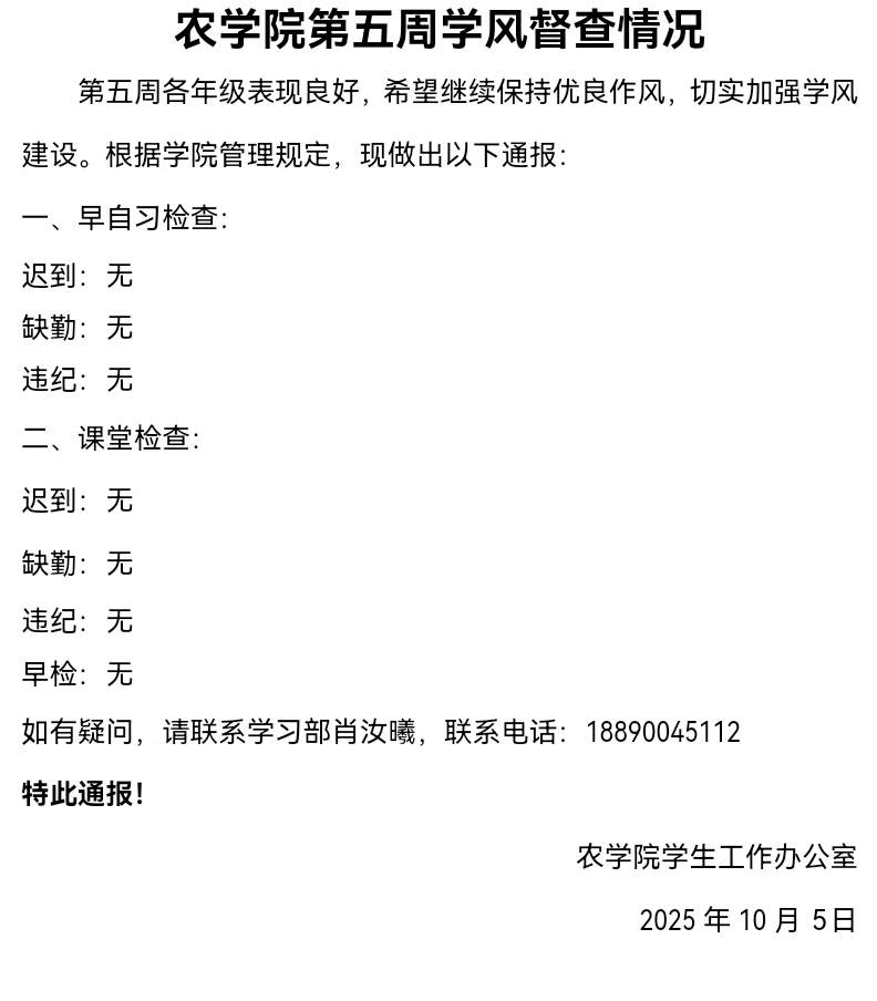 在第五周的课堂检查中,各年级均表现优秀。希望各年级保持优良作风,切实加强学风建设。