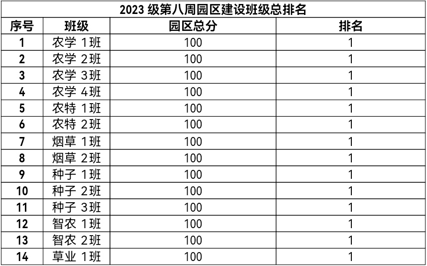 第八周2023级和2025级表现优秀,卫生情况良好,希望继续保持,2024级卫生情况有待加强,向2023级和2025级看齐。同时希望各年级切实加强学院园区建设,共创美丽校园。