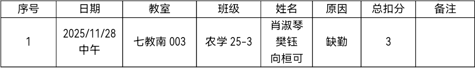 2025级课堂到位情况较差,存在较多缺勤现象,2023级存在课堂违纪,2024级课堂情况较好,继续保持优良作风。希望2025级、2023级能及时改正,切实加强学风建设。