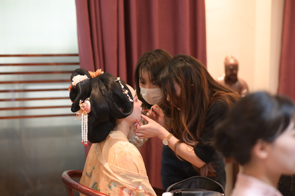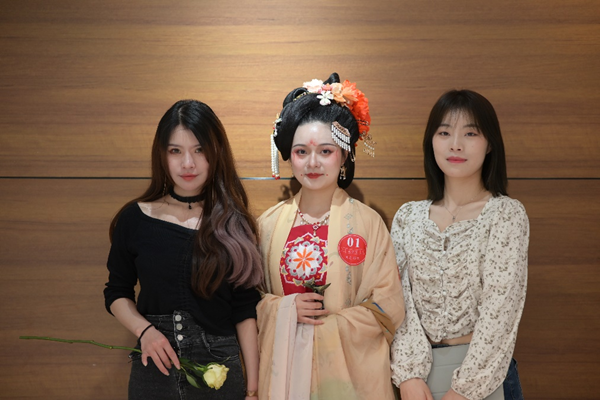 我院研究生刘风、张蕾组成的参赛队伍“风之彩队”带着作品“云想衣裳花想容”参加了化妆大赛。参赛队员们精心准备,比赛过程中经过对参赛服饰、妆容等细节的展示和对作品文化底蕴的讲解,成功获得大众评委一致好评,最终摘得桂冠。