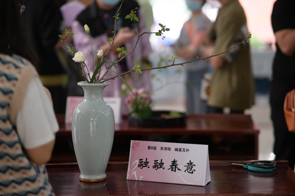 另两支参赛队伍“碱基互补队”和“向日葵队”参加了插花比赛,作品分别为“融融春意”和“惊蛰”,两支参赛小队用初绽的花蕊和嫩芽诠释了融融春意,均获得大赛优秀奖。
