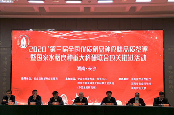 本报讯 (宣传部 庹炼)12月19日至20日,由农业农村部、全国农业技术推广服务中心和国家水稻良种重大科研联合攻关组主办,湖南省农业农村厅、湖南省农业科学院和湖南农业大学承办的第三届全国优质稻品种食味品质鉴评暨国家水稻良种重大科研联合攻关推进活动在长沙举行。会前,湖南省人民政府副省长隋忠诚到会场看望与会专家,希望专家们通过广泛交流,深入推进水稻良种联合攻关,加快培育和推广一批高产稳产、绿色生态、优质专用、适宜全程机械化新品种,确保我国种业安全。