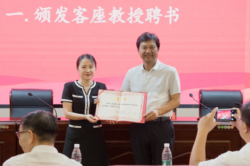 农学院党委书记刘敏向大家隆重介绍了曾局长,并举行了客座教授聘书颁发仪式。