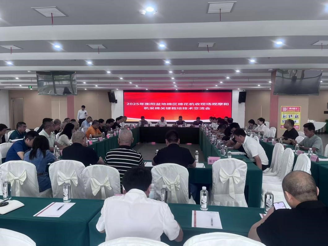 2025年10月12日至13日,由我校主办,衡阳县农业农村局、湖南省棉花协会及湖南省棉花产业技术体系共同承办的“衡阳盆地棉区棉花机收现场观摩暨机采棉关键栽培技术交流会”在衡阳县顺利召开。来自湖南省农业农村厅、湖南农业大学、湖南省农业科学院、湖南省棉花产业技术体系、湖南省棉花协会的领导与专家,以及衡阳盆地棉区各植棉大县、湘南重金属污染区各植棉县的相关负责人和种植大户等70余人参加了会议。