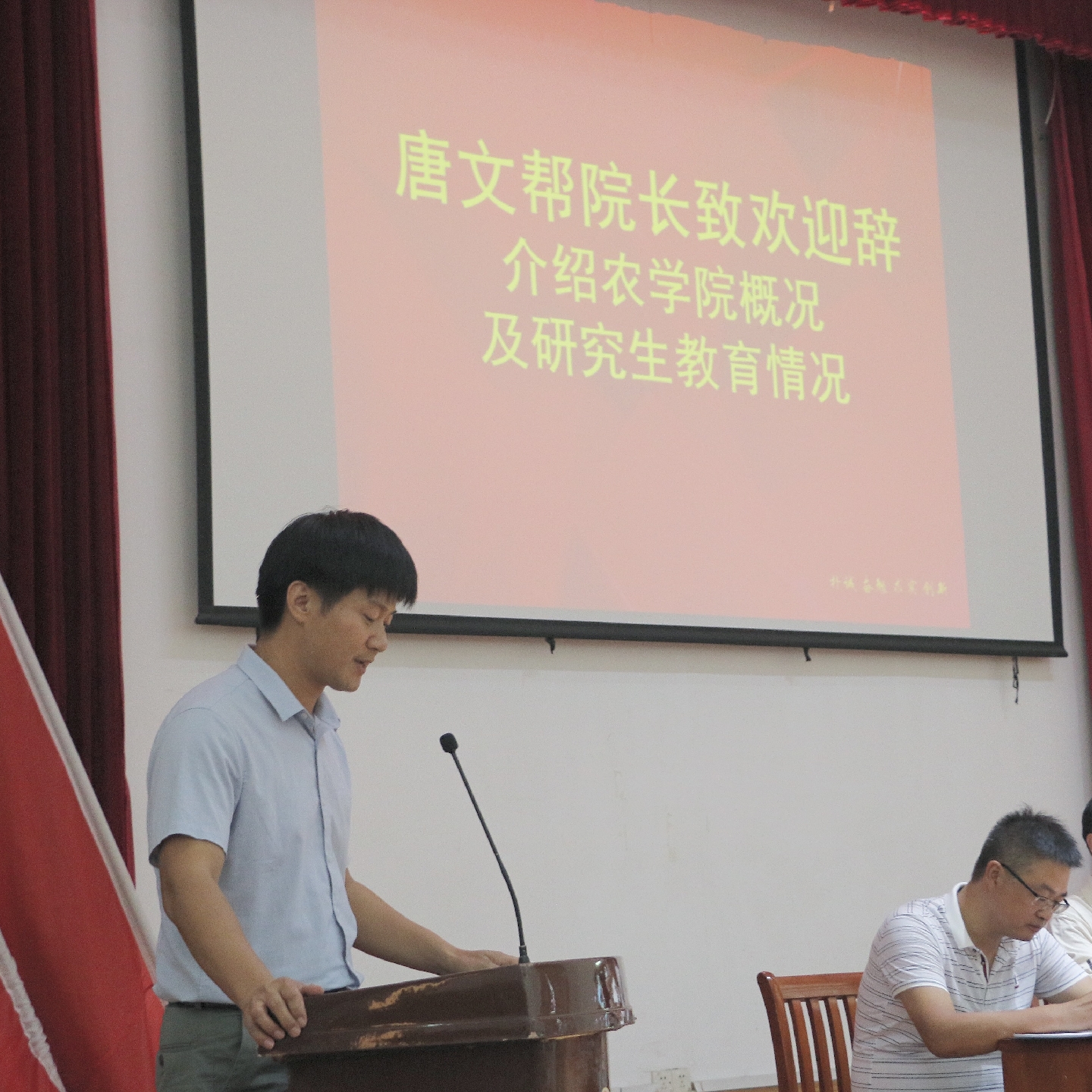 会上,唐文帮院长致欢迎辞,介绍农学院历史及学院成果,讲述我国农业现状与发展。同时,针对研究生的学习,唐院长指出,希望同学们乐于奉献勇于当,提升自身品格,同民族目标融合,并学会发展问题研究问题解决问题。随后,导师代表刘雄伦教授发言,刘教授给予了同学们几个建议,分别以明确学习目标和方案,合理安排时间,处理好关系,培养能力以上几点展开。新生代表姚威同学表示对未来的期望并且会致力于学术研究。接下来是黄敏教授作创新创业教育报告,黄教授表示要多融入团队,并且要把科研当做最大的爱好,传承老一辈的精神。