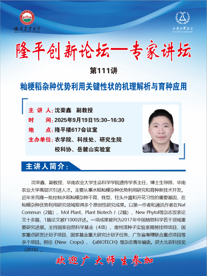 隆平创新论坛—专家讲坛:籼粳稻杂种优势利用关键性状的机理解析与育种应用