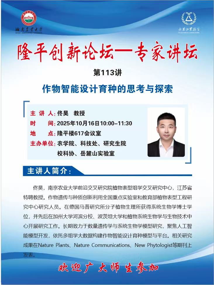 隆平创新论坛—专家讲坛第113讲:作物智能设计育种的思考与探索