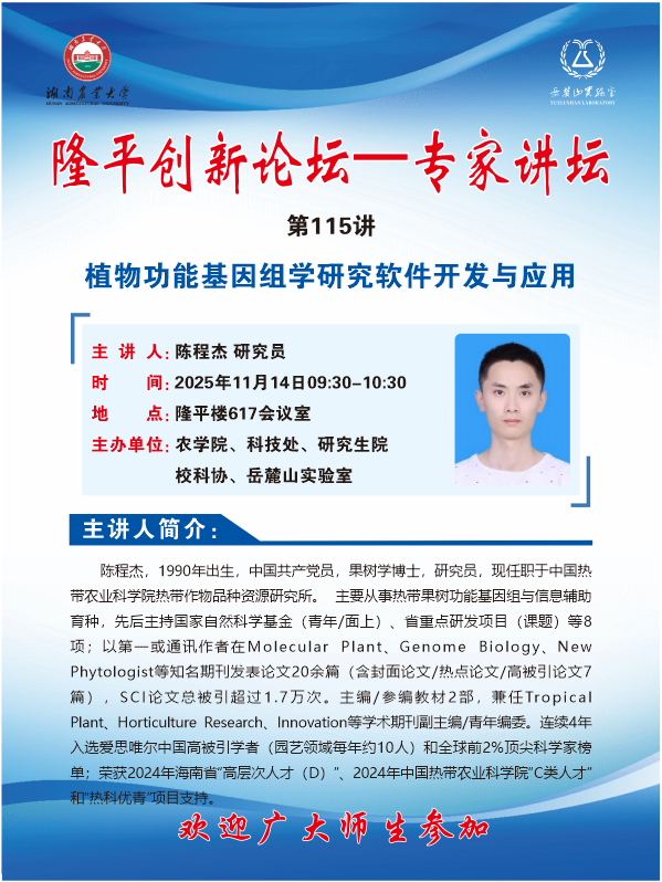 隆平创新论坛—专家讲坛第115讲:植物功能基因组学研究软件开发与应用